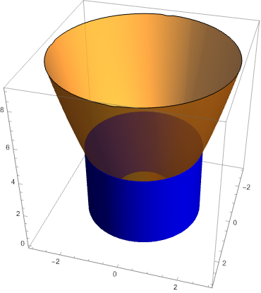 Find the volume under \(f(x,y) = x^2+y^2\) and over the annulus \(R\) of inner radius \(1\) and outer radius \(2\):
